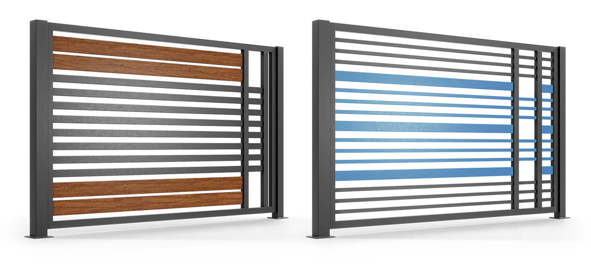 Les clôtures élégantes sont spécialement conçues pour les habitations modernes. Leurs travées constituées d’éléments horizontaux apportent un style actuel, épuré et design.