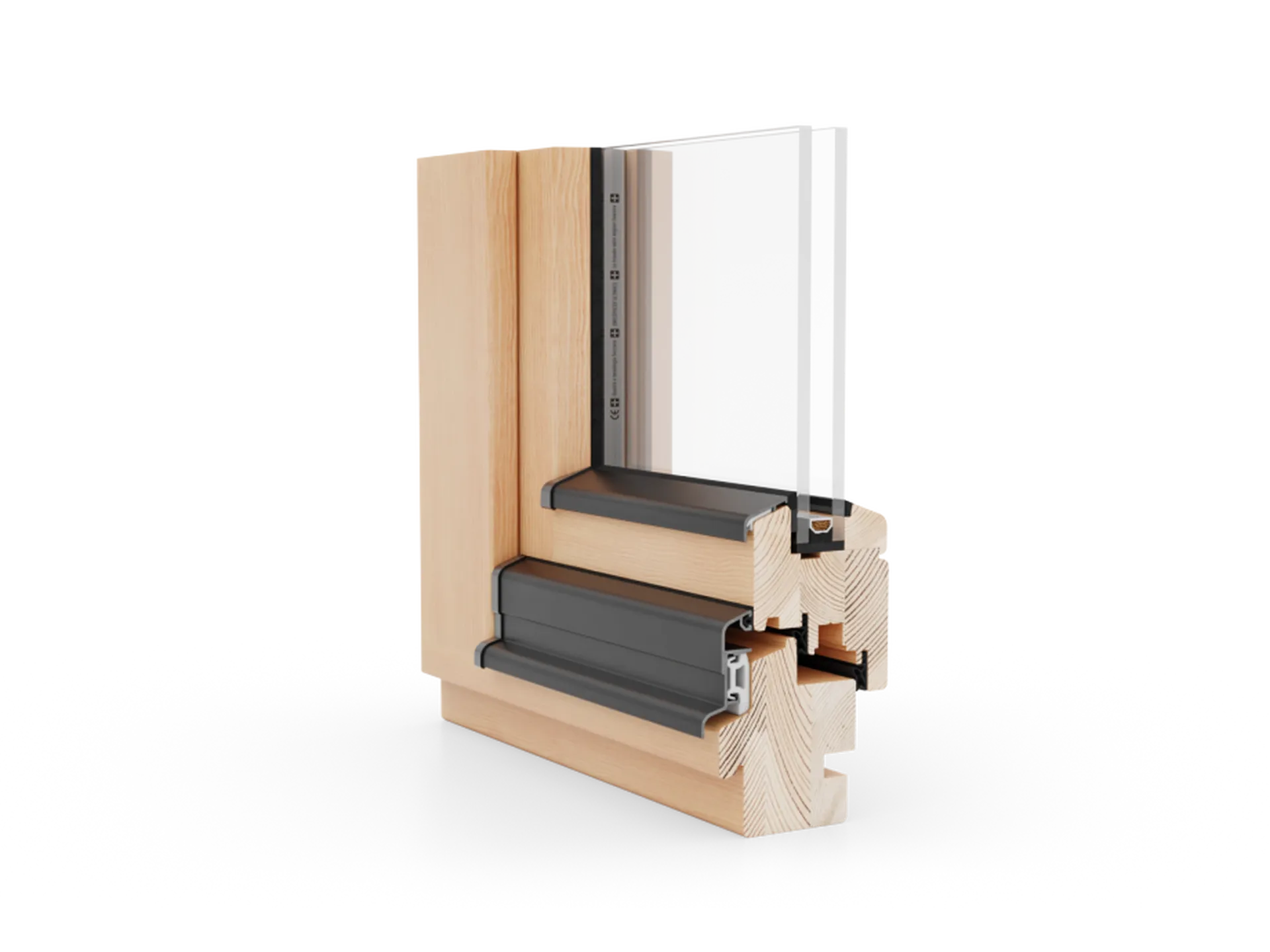 Nos fenêtres en bois sur mesure sont conçues à partir de profilés solides composés de trois ou quatre couches de bois, assurant une stabilité optimale et une grande résistance dans le temps. Cette conception multicouche limite les déformations et renforce la robustesse de la menuiserie.